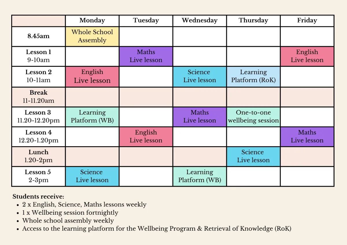 Receive your welcome pack, tech setup guide, and timetable — then your child is ready to begin learning with us.